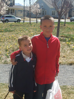Josh and cousin Bodie finding all the eggs.